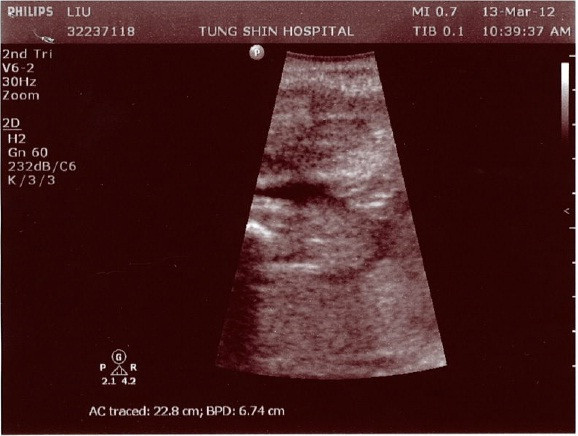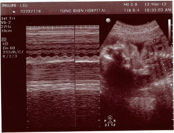預約的時間是早上10點,但是大約到10:30才輪到我們看到醫生。醫生是個有點年紀的華人,說中文就可通,看著我準備的先前產檢資料,對於各項結果非常滿意。也做了超音波,醫生邊看超音波邊說:「很愛動啊,一直動啊」,看來招財也和招弟一樣都被歸為hyper型的孩子。醫生推估招財目前為1公斤,且說以後每次產檢都要照超音波要追蹤孩子的生長情況。我和鍵哥一致認為這是因為每照超音波他都可以收錢,所以照得樂此不疲。