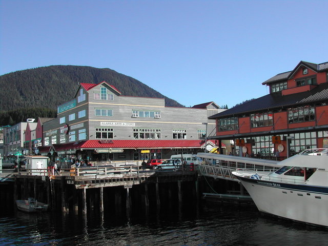 KETCHIKAN港口。附近的店家全為紀念品店,遊客絡繹不絕。