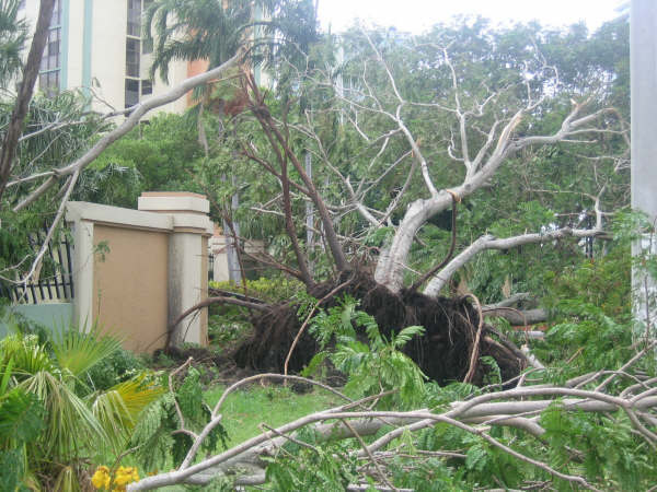 隔天到街上一看,一棵很大的樹連根拔起的倒了,仔細一瞧,根很淺很薄,一點都沒有抓地力,難怪會倒。還看到很多折斷的樹枝,看起來好像這邊的樹枝特別脆弱,很容易折斷,所以看起來好像災情慘重。再說說淹水,這邊很多地方平時下個一小時的大雨,很多地方都會淹水,更遑論暴風雨後淹水會多麼嚴重。聽學姐說這邊的人好像很少罵政府市政建設很差,所以好像都沒有什麼改善,所以,淹水是必然的吧?!