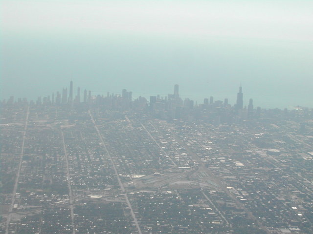 從飛機上看到的Chicago Downtown。依稀可以指認出幾棟有名的大樓。