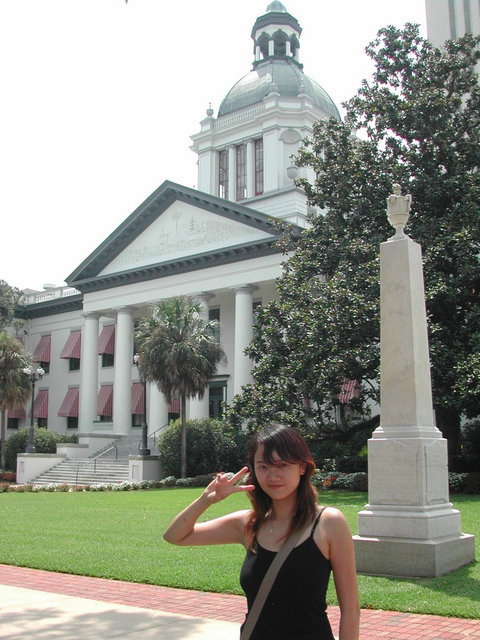 好不容易到了Tallahassee,我承認我很驚訝!這裡比我想像中"為了促進偏遠地區開發,便將首都移至Tallahassee,那邊是個鳥不生蛋的地方"的印象完全打破。Tallahassee非常非常漂亮,樹木高大,很多都依附著松蘿,市容整齊,而且地勢高低起伏,比完全平坦的Miami多了些變化。