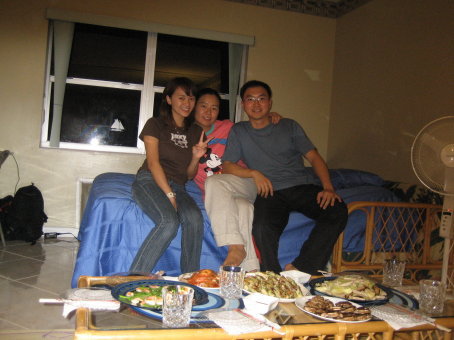 一如往常的,我帶了瓶最愛粉紅酒當伴手禮,也做了兩道菜過去potluck一下。當我們到達Park家時,滿桌豐盛的菜餚,有烤牛小排、辣味海鮮湯、泡菜、我想吃的海鮮煎餅,加上我帶來的食物,整個桌面幾乎要擺不下了,而Kwunsoo(夫)一直模仿Prof. Moncarz以及Prof. Resinzer,誇張的動作和維妙維肖的表情,差點沒把我笑屎,我終於理解為何EnHee之前跟我說他婚前總是被Kwunsoo逗得開心極了。