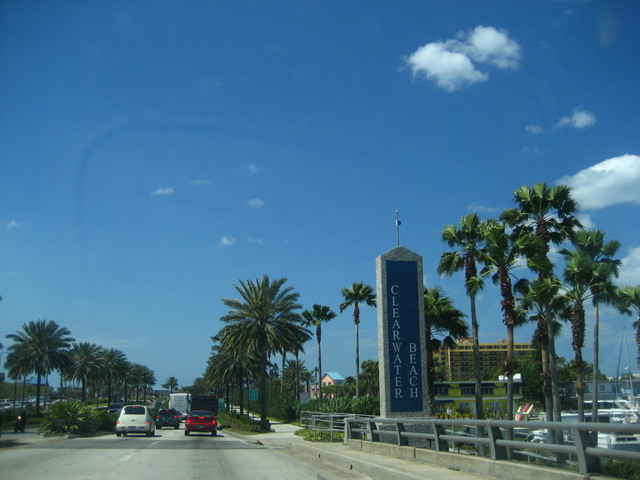 Clearwater Beach路標~天空很藍,樹木高大綠意盎然,佛州的美就是如此~