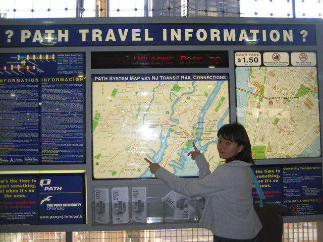 世貿遺址確實沒有看頭,只是一個好大好大的被挖的很深的大洞,聽說老美又想蓋兩棟比之前世貿更高的大樓。不過倒是意外發現了PATH,這是可以通到New Jersey的地鐵。來紐約前哥哥就建議我可以住New Jersey然後做地鐵來NY,旅館費會便宜很多,但那時候找不到PATH的相關資料,所以也就沒有住New Jersey了,現在看著指示圖,好像還頗方便的,下次來紐約可以試試看住紐澤西呢~