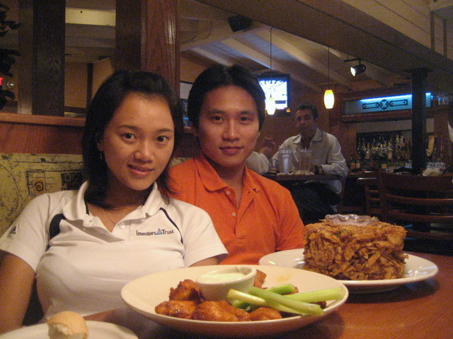 Tony Roma’s以它的Rib聞名,而我又是Baby Back Rib愛好者,所以我們點了一份Original Baby Back Rib,一份Chicken Wings以及它的另一個特色菜:洋蔥磚。我記得以前在台灣時還和賈斯丁學長等人慕洋蔥磚名特地跑去貴松松的Tony Roma’s呢!!