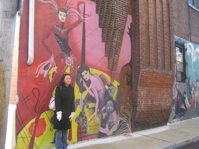 接著信步往富蘭克林大橋前進,橋身的拱型還蠻漂亮的,很多明信片會以這橋當主題,不過其實橋身的鋼骨結構很多都生鏽了,配上原本的青綠色,看起來實在有點老舊。沿著XX路往回走,會經過一些類似畫廊的店,也意外發現一條號稱美國最老居民街到的巷子。這邊的房子看起來都很可愛,塗漆也都很色彩鮮明,地上也都是以石板舖成,站在上頭會讓人忍不住想像古時候馬蹄在上面踢踏的畫面。