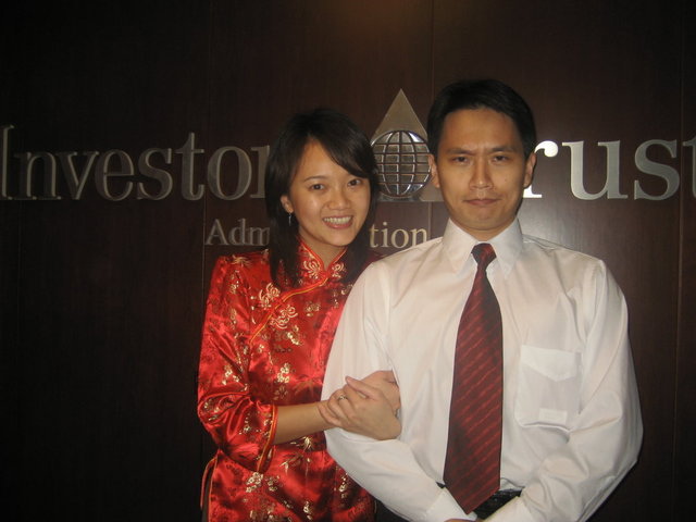 我的小鳳仙裝~背後是公司lobby的招牌~