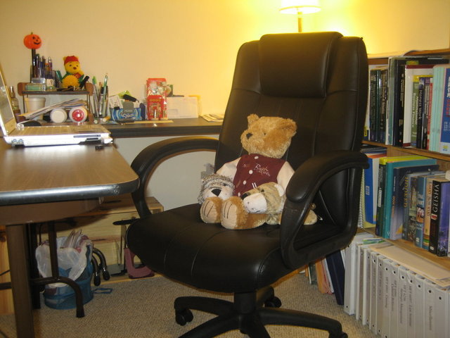 今天等待小黃洗車打臘的時候,我們到鳥路上的Office Depot看看。結果有一張高背辦公椅,坐起來舒適,看起來大方,價格只要$49唷~~原價可是要$99呢,現在在大特價中,特價只到3月15日。我和鍵哥考慮了一下子之後,決定買下這把椅子。