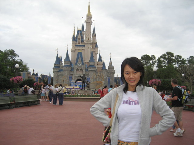 Disney每晚都會施放煙火,其中又以Magic Kingdom的最為盛大壯觀。今晚的煙火10點開始,許多絕佳觀景點早就被識貨的遊客佔據,原本想在一個餐廳外面的桌椅坐下好好休息看煙火的,無奈已經沒有空位,便和鍵哥站在附近的階梯上看煙火。開場的小仙女(是真人裝扮的唷)由城堡上方掉著鋼絲從我們頭上飛過,真是個需要大膽人的工作啊~~炫麗的煙火一波接一波,而且Disney放煙火毫不手軟,常常會一起施放一整排亮晃晃的亮黃色煙火,把整個夜晚照耀的像白天一般。整個煙火活動歷時20分鐘,我們也目不暇給的觀賞了一段讓人回味無窮的煙火表演。