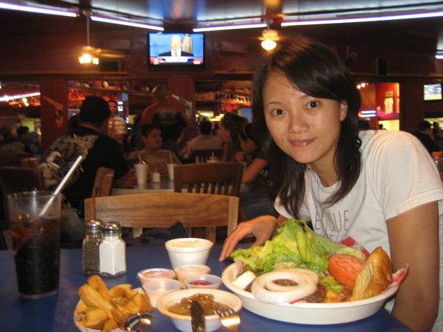 下班後到附近蒐集租屋資料,約莫七點左右,在回家的途中,兩人都覺得懶懶的不想煮飯,那就去吃US1和 SW 104 St交口的速食店,我們都叫他"Open",因為第一次去吃的時候,門口正在整修沒有掛上招牌,附近又剛好有一個廣告刊版招租中,寫著大大的Open(就是說這看板目前沒人用,要租快來),我們就索性叫這家店Open。哈哈!!
