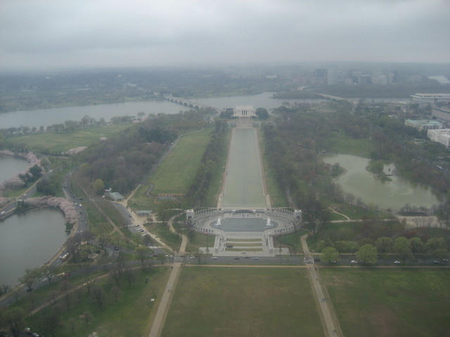 這是在紀念碑上看到的林肯紀念碑方向景色~可惜今天下雨霧濛濛的,不然一定很漂亮哩!