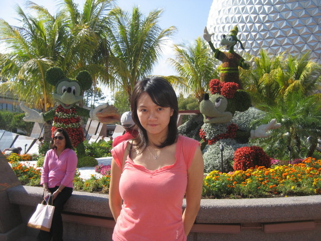 先去拿了最熱門的Soarin Fast Pass,然後把周邊的設施都玩了一次。我們今天算是早鳥(Early Bird),進園的時候大約10:45,園區裡遊客還沒很多,在13:30以前,我們已經玩過了三個設施。Disney 一向以寓教於樂著稱,加上Epcot強調的是未來的科技,所以我們參觀了一個用水耕方式栽培的溫室蕃茄、茄子、香草等植物高高的掛在半空中,用水耕的方式避免對環境造成的污染也提供了更有機無污染的蔬果。"The Circle of Life"則是用獅子王裡的主角演了一段故事,讓大人小孩都學會要分享這地球的資源,同時只拿需要的,而不是無節制的向大自然索取過多的資源等等。還不錯啦~~在非常不環保的美國看到有機構還是關心環保的議題,而且是在孩子身上紮根這一觀念,讓人對美國的未來還是感到有點希望存在。