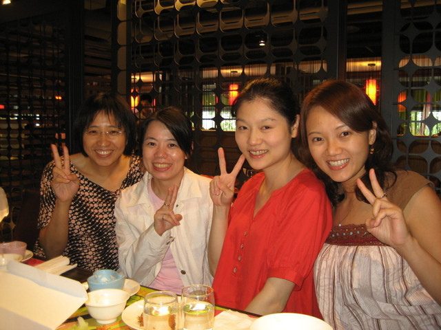 Christine最晚到,皮膚實在有夠白皙,而且生了一個孩子的她都還是瘦瘦的,不愧是生活在台北的女人啊~~而負責幫我連絡這兩天JPC EC聚會的Catherine在下客之後趕來,穿著呈現出專業的形象呢~~而且聽說他的保險事業做得不錯唷~~真是太厲害了~~在聚會中場,Winnie還打電話來呢~~他們舉家移民到花蓮,過著只羨鴛鴦不羨仙的生活,如果有空再去找他以及乖巧的言言玩~~