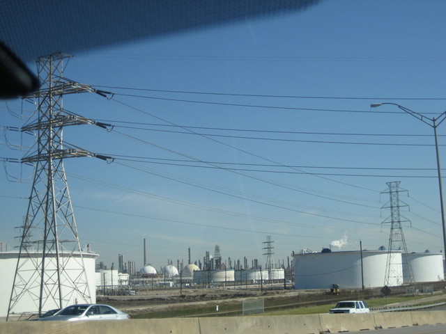 從旅館沿著I-45往北再接I-610、225以及134,照著已經查好的地圖以及路上的指標,完全不用擔心迷路。沿途可見許多德州廣大的草原,不知道是太乾還是太冷還是太熱,這些草原呈現出枯黃的顏色,而不是綠油油充滿生氣的景象。但是路上剛好會經過許多鑽油井,巨大的機械、圓滾滾的儲油槽以及工廠冒出的白煙,是我從來沒見過的風景,當然,這一州的油價也特別便宜,regular在這邊 1 g allon約$1.43,但在邁阿密卻要$1.87,不愧是原產地的東西就比較便宜啊!
