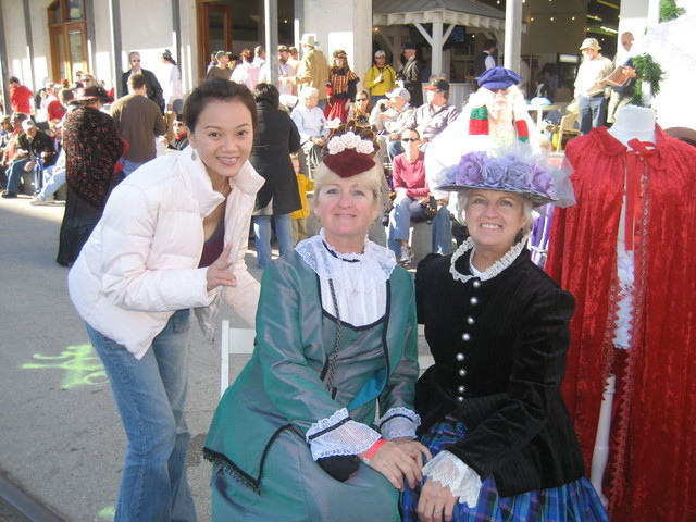 原來每年12月的第一個禮拜六日,在Galveston會有一個區塊的街道被圍住,舉辦著「英式服裝角色扮演」的活動,許多女生穿著英式的馬甲上衣、長澎裙、拿著小白洋傘,男生則是戴著黑色禮帽、黑披風、拄著柺杖,這些怪異打扮的人活生生的走在路上,而且只要有打扮,買門票就可以用半價進場唷~所以很多人穿著英式古衣服來共襄盛舉呢~