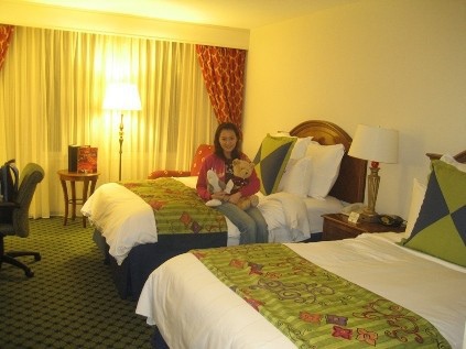 這次旅館房間是兩個Queen,都是太晚confirm reservation了啦~不然我們都指定King Size Bed的說~