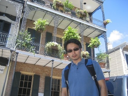 在French Quarter裡,很有名的就是建築物的風格了。古樸的二、三層樓房,每一層都有和房子等寬的大陽台,陽台外圍是雕花繁複的鐵欄杆,欄杆上再掛著一些盆栽。在陽台上擺上桌椅喝酒談天,或是倚著欄杆看著經過的人們,不論你是看人或是被看,眼裡所見的這美麗的建築景致,已讓人招迷萬分。