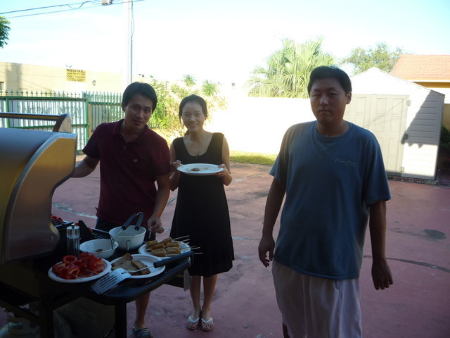 即使已經10月天,邁阿密的太陽還是很熾熱惹人厭。活動雖是下午3點開始,但是台灣人愛遲到的民族性,直到5點多眾人才珊珊來遲,而負責運送我最愛吃的甜不辣的同事也在此時才到達,沒關係!我現在有招弟加持,即使準時3點到的我,在這兩小時內吃了不少同事媽媽手工包子以及烤牛肉、烤香腸等食物,還是有辦法將接下來烤好的甜不辣一個一個吞下肚。