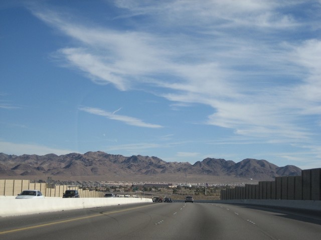 在塞了一小段路之後,眼前出現一個碧藍色的大湖。這碧藍的湖水像一面大鏡子一般鑲在兩旁土黃色的山脈之間,是幅非常美麗的景致,難怪附近丘陵置高點蓋了些許房子面向這個湖。繼續往下走,開始會在山脈間迂迴穿梭,偶爾可以看到大片的沙漠景致。一但經過車輛檢查哨以及看到發電廠之後,請做好心理準備,因為胡佛水壩即將出現眼前。