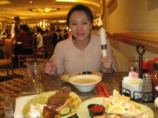 菜色的部分,我個人覺得以一個賭場的Buffet來說有點寒酸,不具多樣化。看起來廣大的拿菜區,很多菜色都是重複的,動線分配也不是很恰當,加上好多華人,很多人會插隊,或是霸占著某樣菜拿不停。我吃得有點難過。
