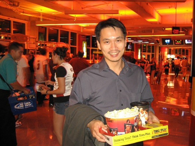 座位一樣是腰受前面,球場數來第6排,正好面對熱火隊休息區的位置。我們回家吃過快速晚餐,拿了相機後,早早的就到達AA Arena熱火隊主場了。照例買了爆米花與可樂(這兩樣竟然都可以免費refill,看來是熱火今年打得不錯,所以給球迷優惠吧?!)就坐到位置上看球員與工作人員忙碌的熱身或是做一些準備工作。