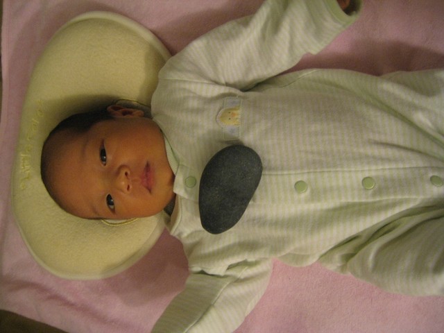 招弟的奶奶,就是我婆婆說招弟的滿月日是3/22(很明顯的用國曆算),要我們拍一張招弟脫帽大頭照。還要我們在3/24(兩天後)再拍一次大頭照,且要放一顆石頭在招弟胸前一起拍。為何要這麼做,鍵哥聽過就忘了,不知道有誰知道這個典故為何啊?