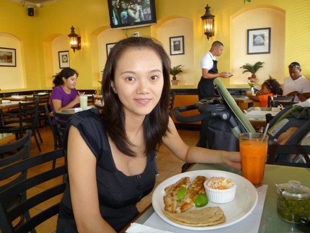 我們點了Cuban Steak古巴牛排churrasco,以及一份煎魚片,味道都很不錯。不過我們的side dish選的是如cole slow、fried yoga等小菜,而非其他客人點的紅豆飯或白飯,所以整體餐點份量看起來很單薄,我和鍵哥也都覺得一定吃不飽。(我們兩個真的很能吃)