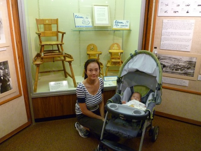 不過在去退費之前,我們還是繼續把博物館剩餘的展覽區看完。看到了愛迪生嘗試做燈泡時的試驗階段的超大電燈泡,好可愛說!也看到愛迪生設計的小貝比傢俱,是可以多樣化組合變化的子母桌,可以讓母親搭配著餵食小孩,也可以變成高腳椅把孩子關在裡面,也可以變成小孩的小書桌組。愛迪生真的很有發明頭腦哩!