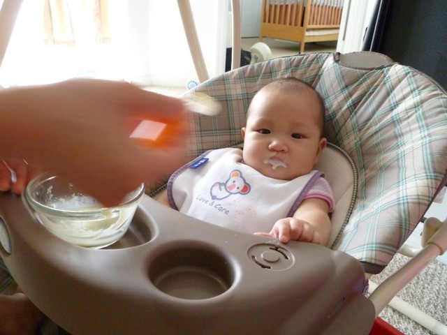 吃米精糊的模樣~~Rice Infant Cereal~~