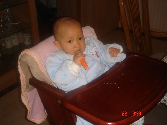 招弟: 只有媽咪把我當大孩子, 會讓我自己抓湯匙. 耶!!
