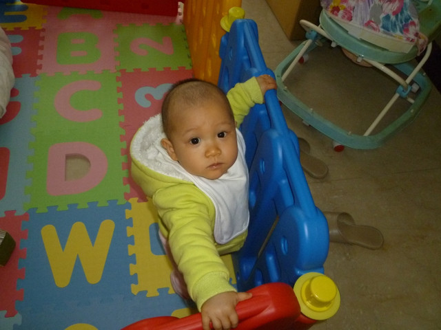 不過招弟這孩子看到狗狗們竟然會害怕哩!他會對路過的狗狗們發出「給給給給」的聲音,還會尖叫喔!把我們逗得快笑翻過去,也心疼的趕快蹲在招弟身邊跟他說那些是小狗不用害怕。這孩子之後出門再看到狗,果然就不會害怕了。所以說一定要讓孩子多接觸不同的人事物啊~