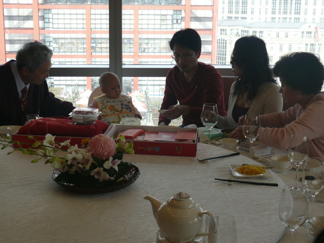 中午我公婆大手筆的在欣葉擺桌,請一些親友共同慶賀招弟滿週歲。因為早上衝忙出門時,招弟還穿著睡衣,打完疫苗我們又直接往餐廳出發,對於讓招弟穿俗俗的慶賀感到過意不去。還好鍵哥舅媽送了招弟一套新衣裳,招弟就可以穿漂漂拍照啦~