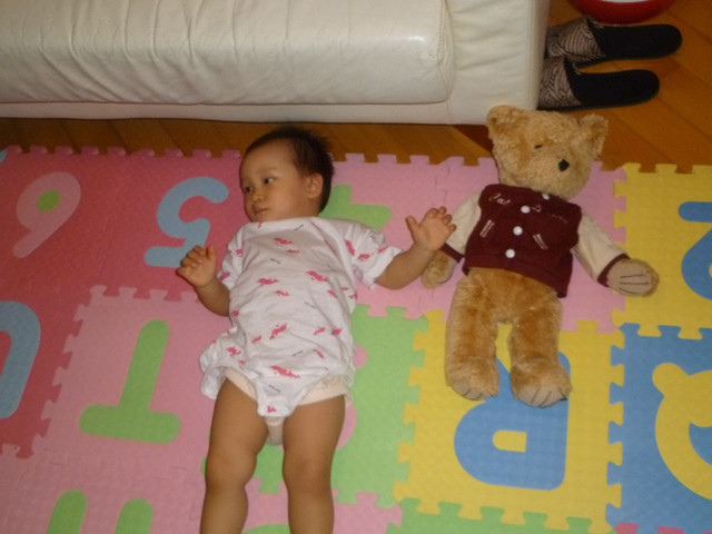 招弟有一陣子很愛躺在地墊上, 還會像毛毛蟲一樣扭著轉圈圈~~