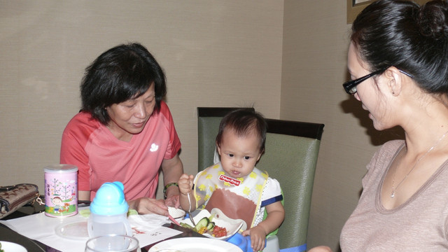 大伯,也就是鍵哥的哥哥也有來一起吃飯。其實我有時候很搞不懂要怎麼稱呼他,是要叫大哥呢?還是要叫他的英文名字?還是要依照習俗跟著招弟叫他大伯?鍵哥的阿姨也有一起來吃,他之前有協助我婆婆在台北照顧招弟一個月,招弟跟他很熟哩!