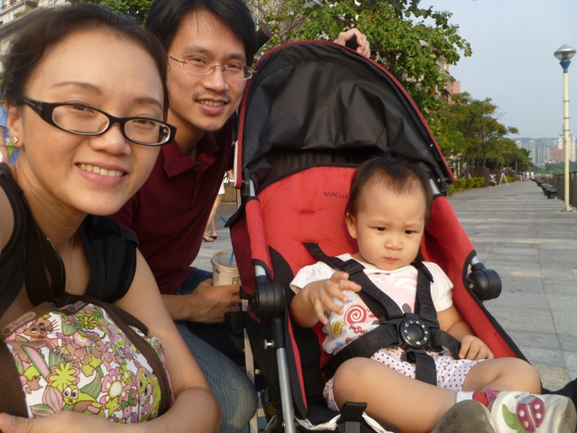 要去淡水玩,想著是個出遠門的行程。但是因為要考慮到招弟睡個覺以後再出門,應該會乖一點,我們一直到下午快4點準備出門。不過也還好晚出門,上網買的Combi汽車安全座椅送來了,剛好可以即刻使用。