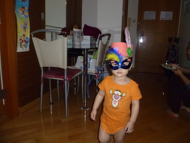 很喜歡上課時做的面具和印第安人帽~~ (1Y9M)