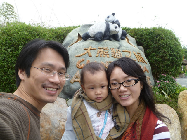 本來還在納悶想說熊貓應該是一整天都在吃吧,為何要特別排定一個時間說是餵食秀呢,我們今天稍後又回來看一次熊貓,那時不是餵食時間,熊貓們都躲起來睡覺了,哈哈!所以園方公佈的時間實在有其道理啊!熊貓吃竹子時的樣子很好笑的,我們看來平淡無味的竹子在他們嘴裡,好像美味如肉排,招弟也都會說:「熊貓吃漫慢」,真有趣。