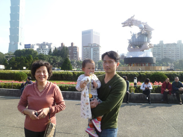 原本希望全家人都出動到戶外走走的,不然悶在家裡實在無趣。但是我公公可能平常上班太累了,也可能這兩天和招弟玩耍太過辛苦,要求自己一個人在家休息,我們其他人帶著招弟出去玩。呵~帶小孩真得很辛苦哩!