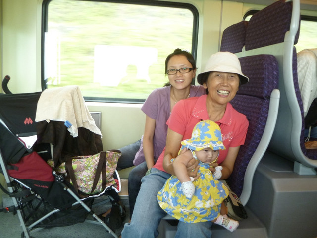 在火車上拍照~~ 招財這孩子穿洋裝哩!! (招財3M)